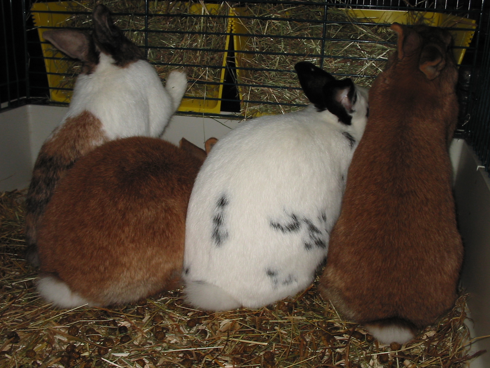 Unser Monster, die Zicke, das Einauge und der Schisshase beim gemeinsamen Frühstück. Erfahrungsgemäss läuft dies recht ruhig ohne ausschweifende Unterhaltungen ab