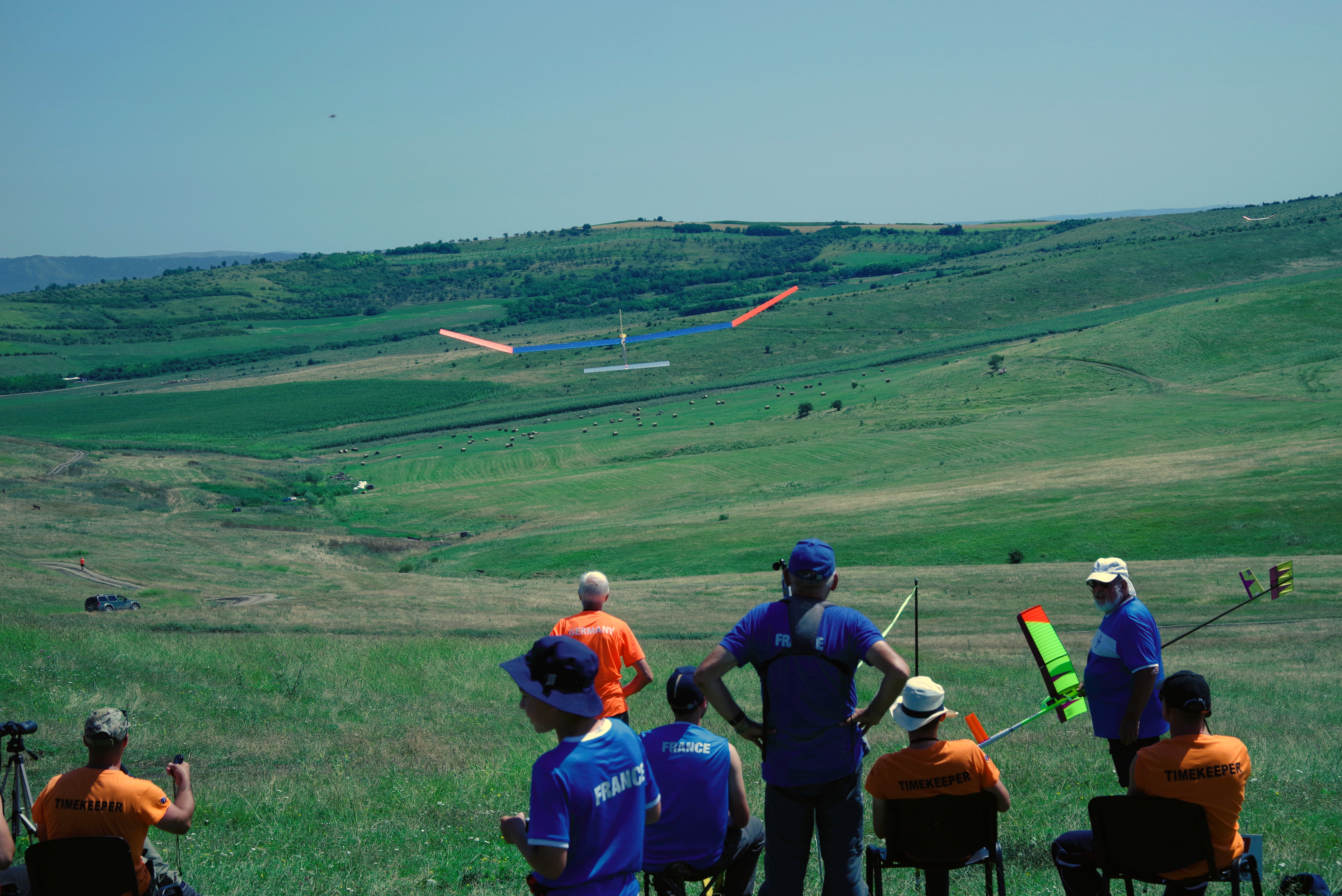 Bei den Senioren war den ganzen Tag kaum eine Wolke am Himmel und der Wind morgens schwach aus Südost und mittags auffrischend aus Südwest. Also fünf Durchgänge mit sehr schwierigen und wechselhaften Bedingungen aufgrund der schwer einzuschätzenden Thermikverhältnisse. An Start wa-ren 37 Teilnehmern aus 13 Nationen.