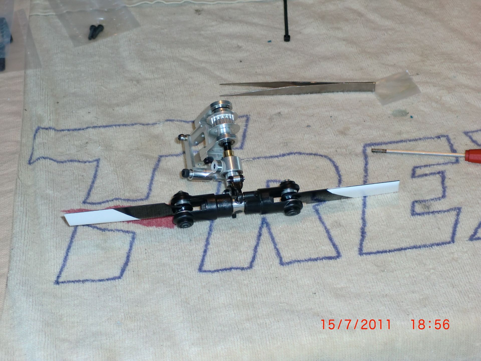 Seit dem Umzug vermisse ich 3 Savox-Boxen, meine Kugelpfannen Tools und etwas Kleinkram. Leider sind in den Boxen die Schrauben für die Servohörner, und bei dem Kleinkram ist auch das Mikado-Servohorn für's Heckservo.