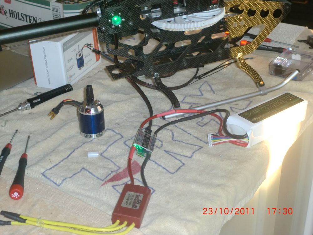 Mir fehlen noch Motor und Akkus (Versandbestätigung von SLS hatte ich heute morgen schon in der Post), vorher kann ich den Regler nicht ordentlich verbauen, weil ich das von den Kabeln abhängig mache.