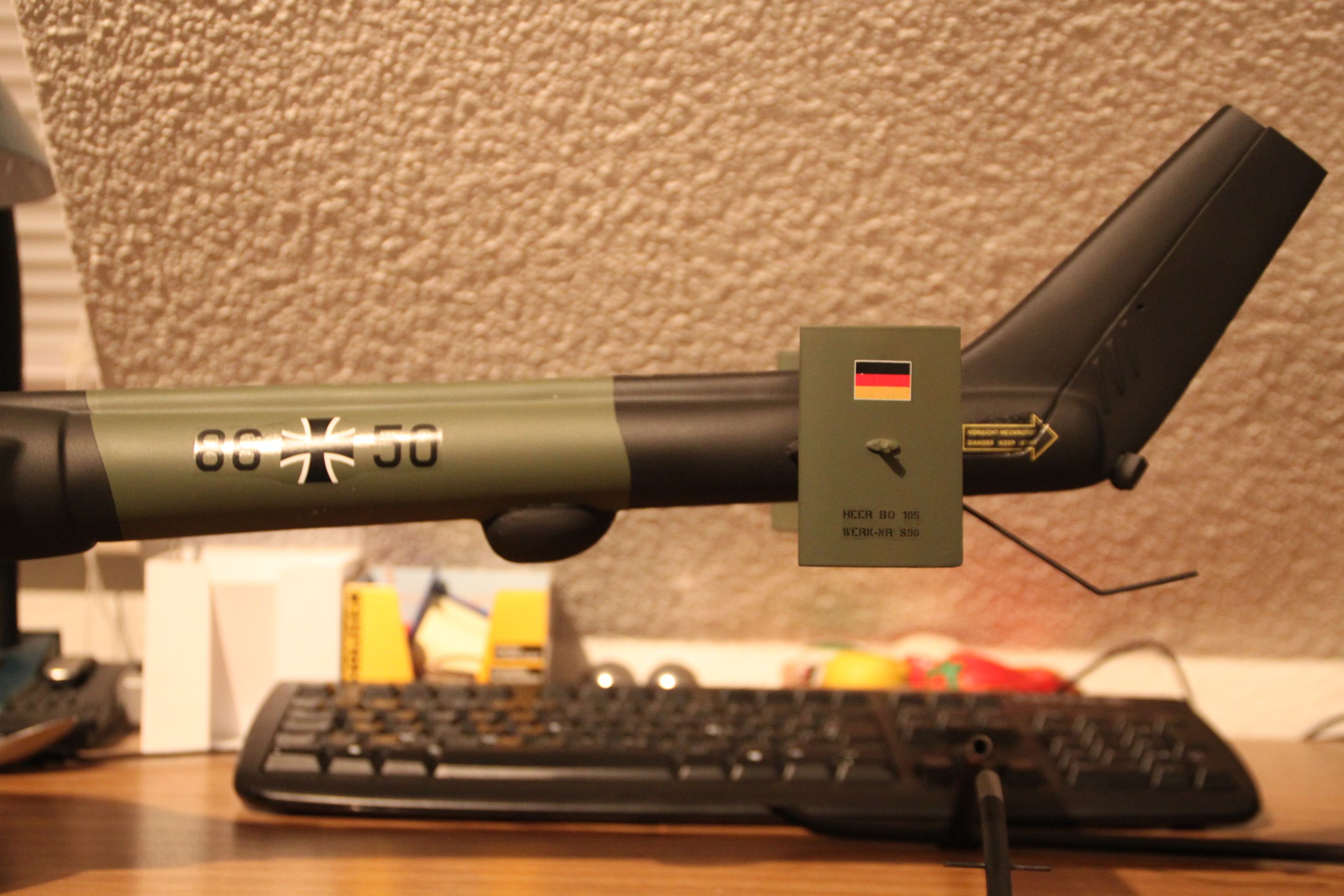 Lackfehler sind repariert. Ende der Woche kommen die Decals drauf, nächste Woche der Klarlack (bei erfolgreicher Lackprobe). Dann kann ich den Rumpf, denke ich, Ende nächster Woche fertig montieren.