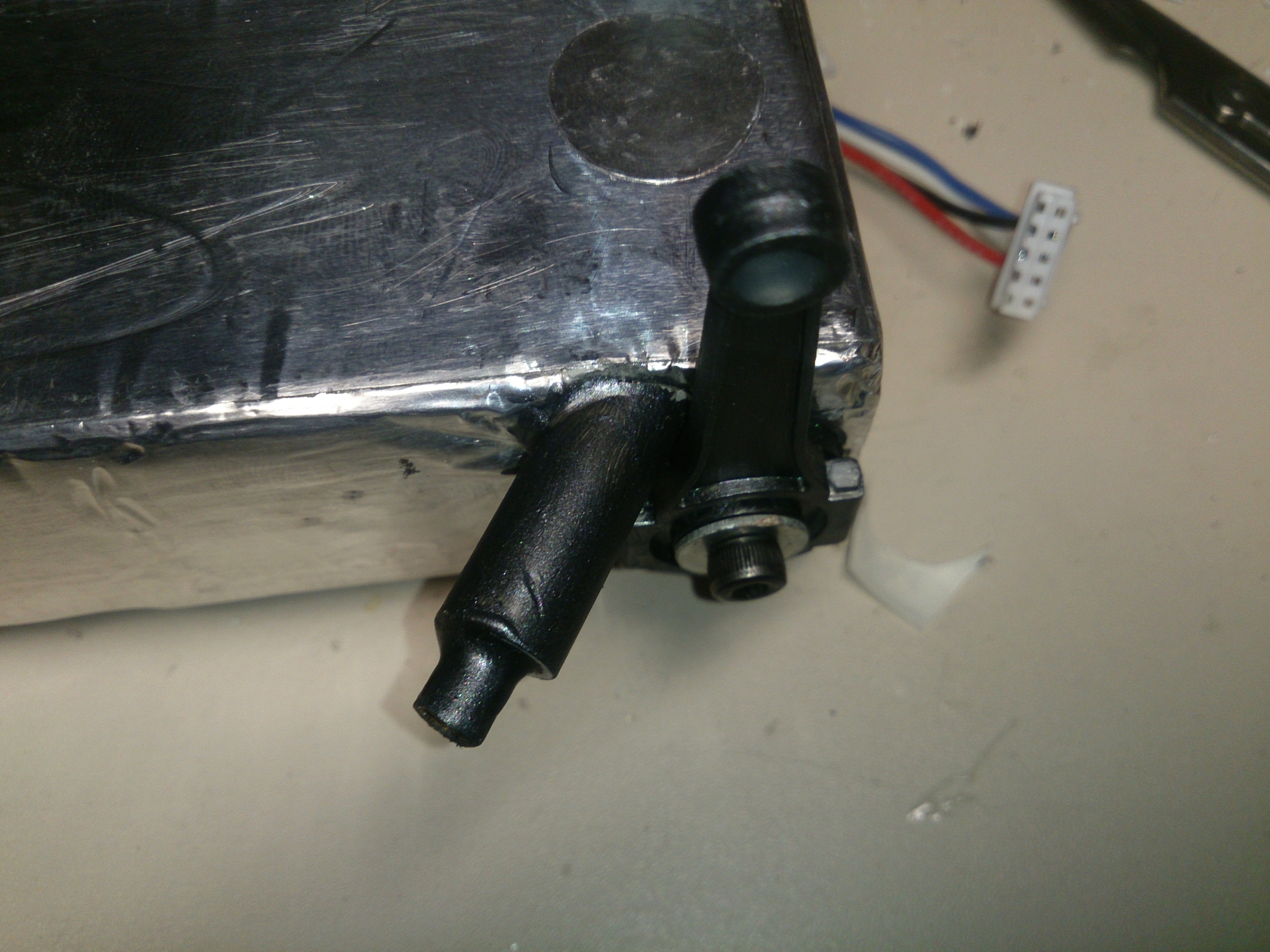 Tankeinfüllstutzen gebaut (aus einer alten Schlitzschraube aus der Mopedkiste), Anschlüsse für die Akku Sprit-Leitungen angefertigt.