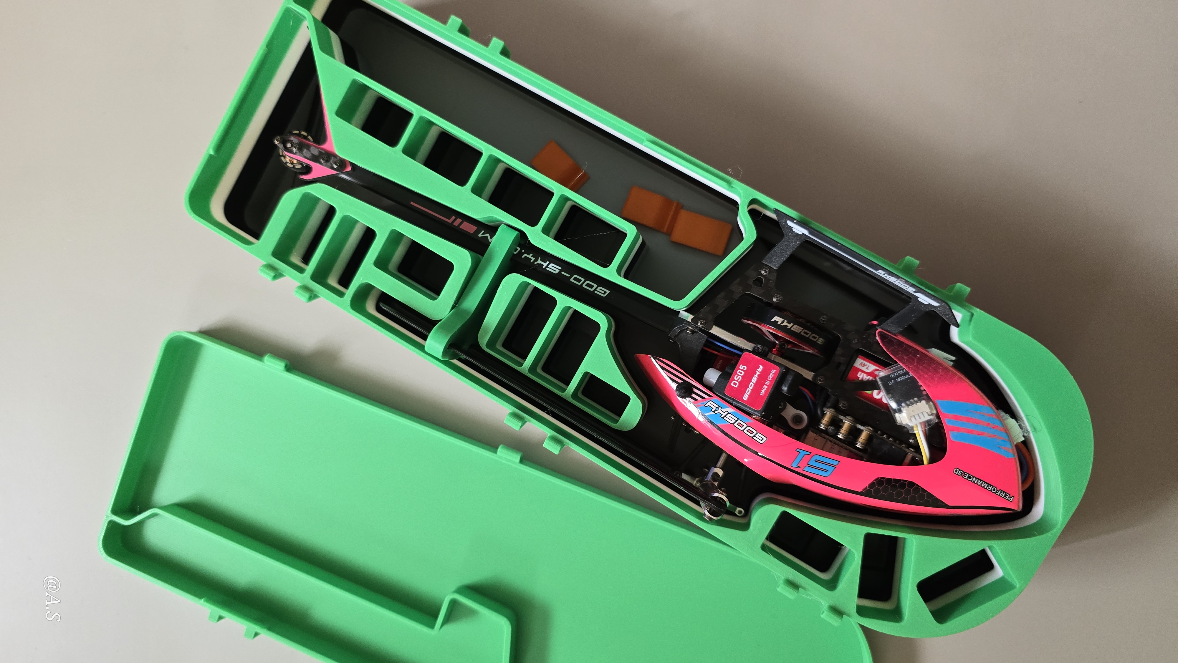 Als nächstes werde ich mir Akkurutschen drucken für einige Helis die wirklich viereckig Geld im Zubehör kosten.
