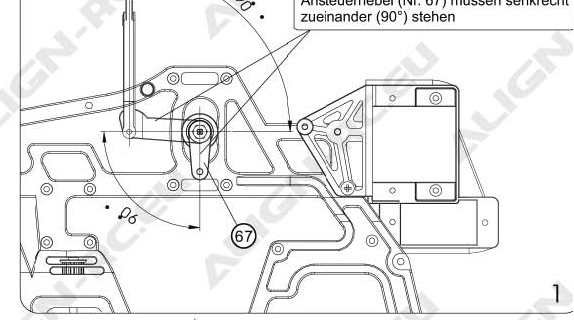 Doch nun kommen die Servoarme der beiden vorderen Servos (HS 65 HB) recht nahe an das Hauptzahnrad, wenn ich bei negativ Pitch auch noch die Taumelscheibe kippe. Habe nun sicherheitshalber mal die Wege vor meinem nächsten Flug reduziert.
