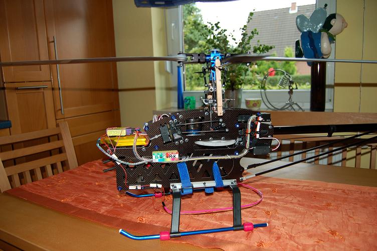 Das einzige Problem sind nun die Akku's. Die ersten Einstellungen sind noch mit 24 Zellen NiMh gemacht worden. Hiermit hat der Hubi dann ein Kampfgewicht von 4,2Kg. Nach 5-6 Minuten Schweben ist dann schluß.