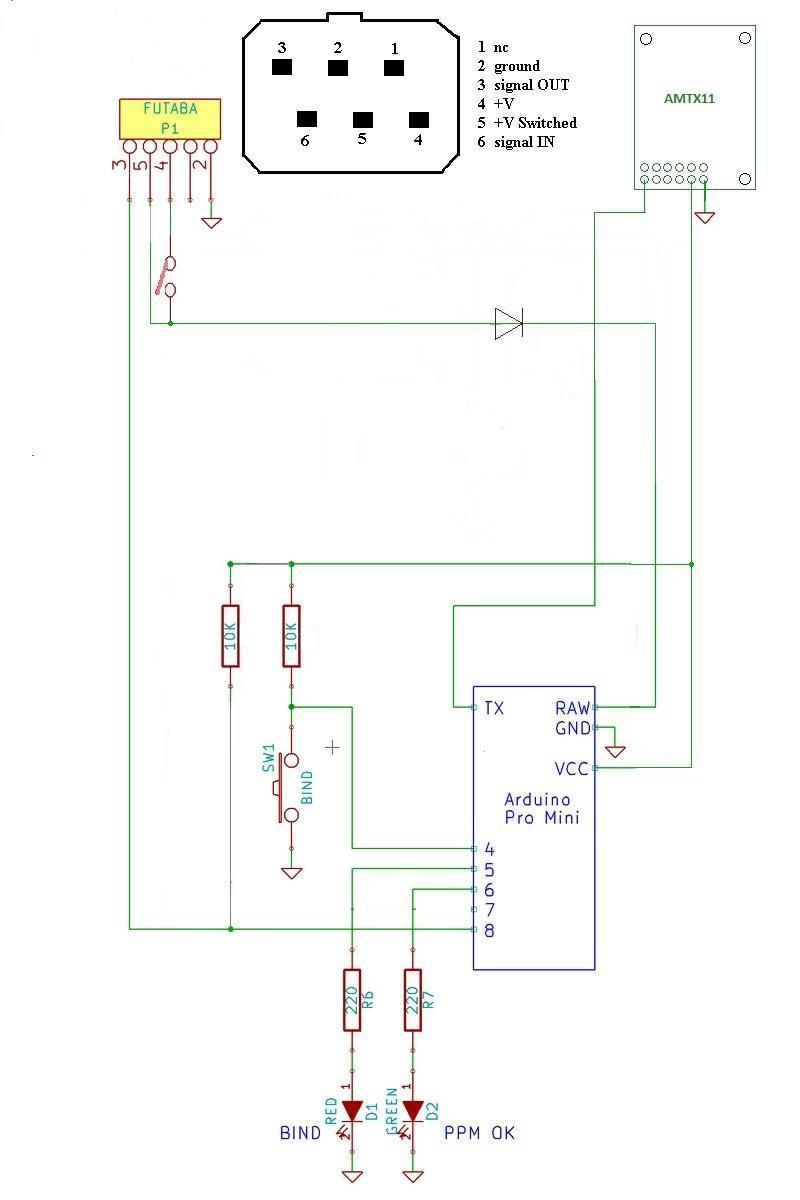 der 6 polige futaba stecker/buchse auf DEM schaltplan