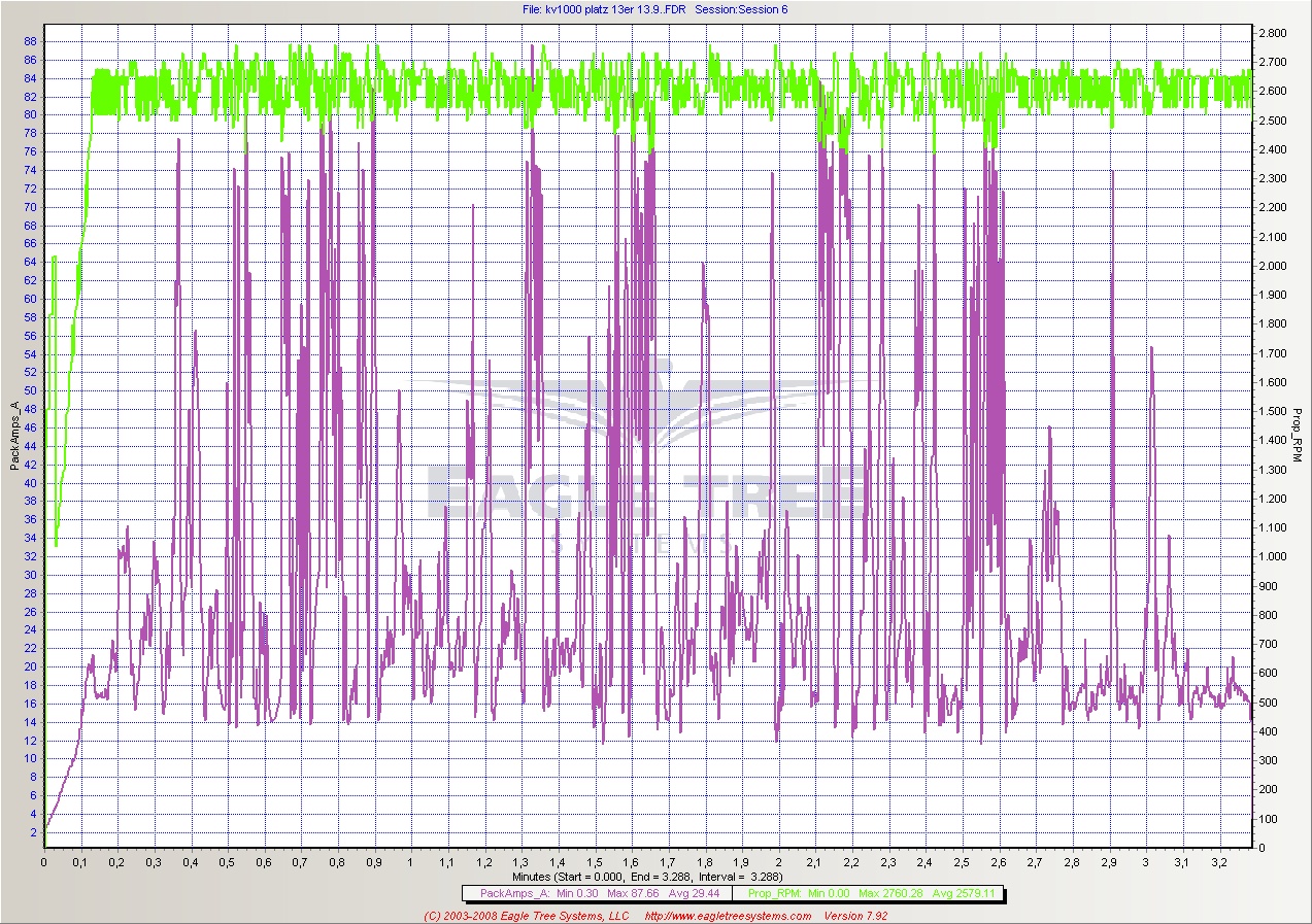 3 minuten vollpitchspeedflug mit geilen powerloops bei 2700upm -> 1800mAh