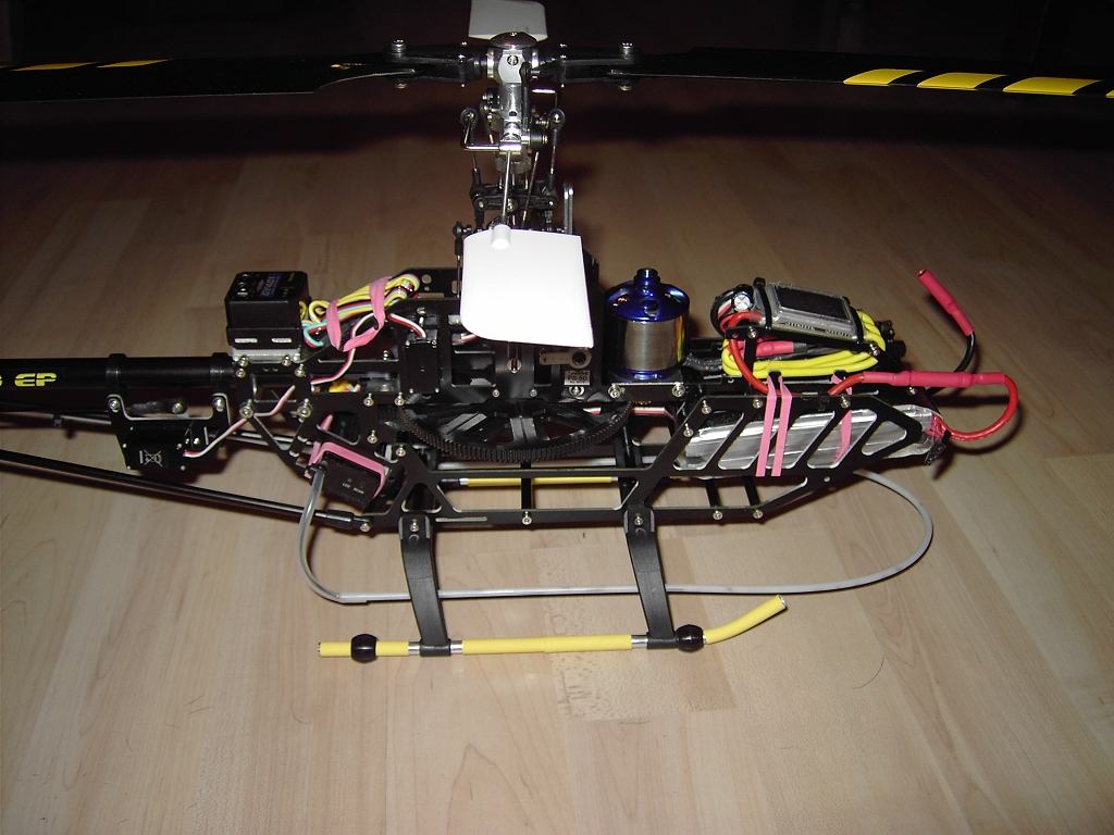 Hab vor mit 4S 20C zu fliegen. Bin grad noch am Motoren- Maximum - Testen. Servos sind auf der TS HS 65 und am Heck ein 3781. Bin noch an ein paar Feinheiten was die Paddelstange und die Paddel angehen und dann geht der Punk ab.