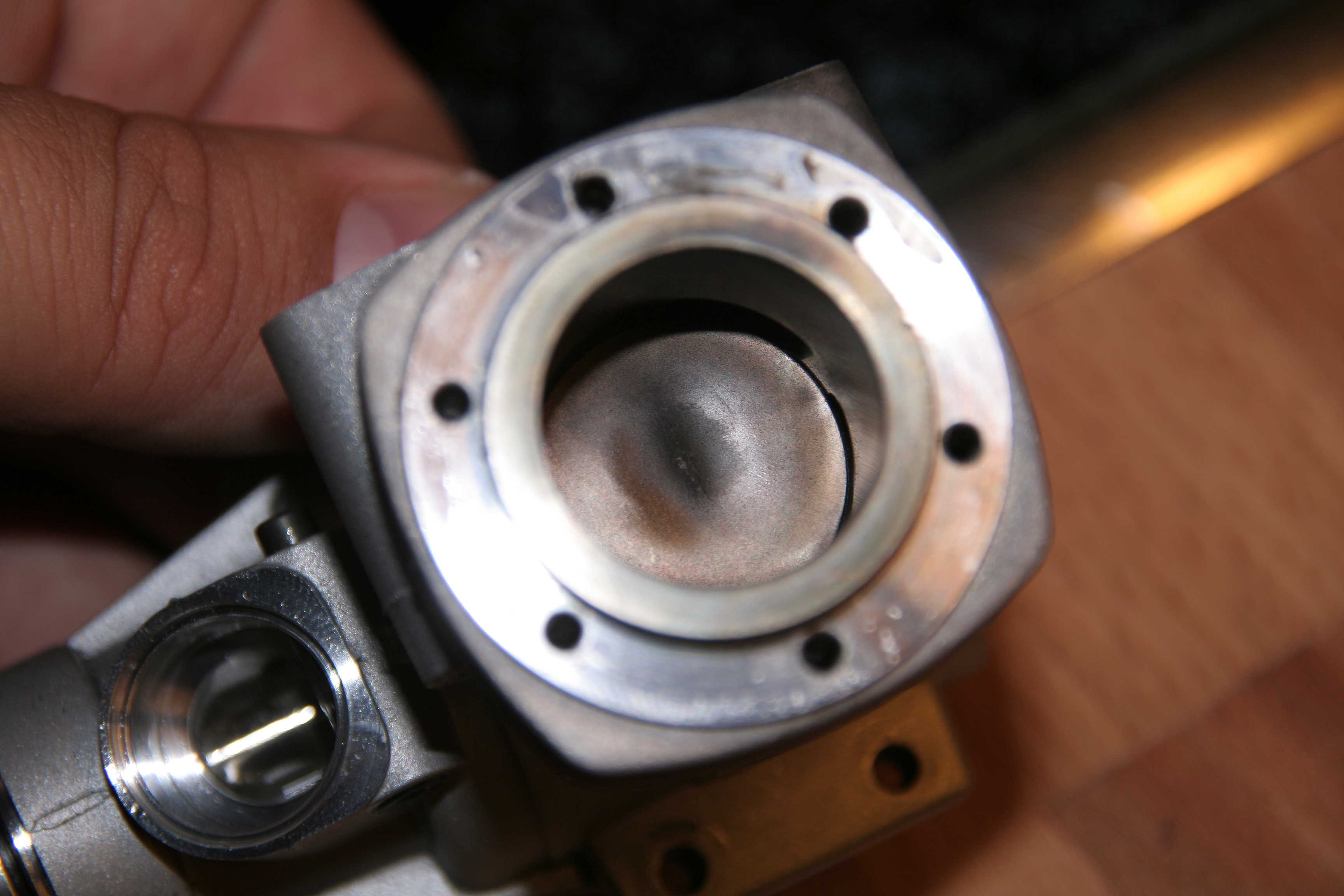 Wie konnte das nur passieren...Basti s Motor hat mit dem gleichen Sprit auch eine Kolbenfenster bekommen.