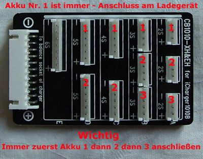 Zuerst Akku Nr. 1 dann Nr. 2 und dann Nr. 3 anschließen!!!
